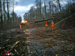 Die Einsatzkräfte arbeiteten die Einsatzstellen nacheinander ab. Teilweise mussten Bäume entfernt werden um an die weiteren umgestürzten Bäume zu kommen. Der Baubetriebshof und der zuständige Förster machten sich ein Bild über die Lage und veranlassten weitere Schritte zur Beseitigung der Bäume.