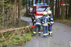 Mehre Bäume blockierten heute Vormittag die Lambrechtnerstraße am sogenannten Oberholz und dadurch wurde die Feuerwehr Andorf alarmiert. Da die Straße komplett blockiert war, musste diese gesperrt werden und eine örtliche Umleitung durch Lotsen eingerichtet werden. Nachdem die Bäume nach und nach von der Straße entfernt worden waren, konnte die Umleitung wieder aufgehoben und die Fahrbahn für den Verkehr freigegeben werden. Nicht ganz eine Stunde lang waren die Einsatzkräfte mit den Aufräumarbeiten beschäftigt, ehe wieder in das Feuerwehrhaus eingerückt werden konnte.