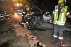 Nur wenige Minuten nach dem Einrücken erfolgte um 18:22 die nächste Alarmierung. Auf der B122 Höhe Kreuzung Heiligenkreuz, kollidierten aus unbekannter Ursache zwei PKW seitlich miteinander. Auch dieses Mal gab es zum Glück keinen Personenschaden. Bei Ankunft an der Unfallstelle wurde sofort eine Totalsperre der B122 eingeleitet. Anschließend wurden die Unfallfahrzeuge auf einen in der Nähe befindlichen Parkplatz geschleppt und dort gesichert abgestellt. Zeitgleich wurde die Fahrbahn von Wrackteilen und Betriebsmitteln befreit. Nach ca. einer Stunde konnte auch dieser Einsatz abgeschlossen werden.