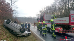 Beim Eintreffen am Einsatzort war das Rote Kreuz bereits Vorort und hatte die verunfallte Person bereits befreit und die weitere Versorgung übernommen. Das am Dach liegende Fahrzeug wurde mittels Kran geborgen und abtransportiert.