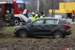 Ein Pkw-Lenker verlor aus bisher unbekannter Ursache die Kontrolle über sein Fahrzeug, fuhr mit dem Auto über den Kreisverkehr und überschlug sich anschließend mit seinem Auto. Der Mann war zum Glück nicht im Fahrzeug eingeklemmt, er wurde nach der Erstversorgung durch Rettungsdienst und Notarzt ins Klinikum Wels eingeliefert. Die Feuerwehr sicherte die Unfallstelle ab und führte die Aufräumarbeiten durch. Ein angefahrener Baum musste umgeschnitten werden.