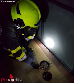 Als die Hauptfeuerwache Villach mit dem Löschzug am Einsatzort eintraf, teilte der Mieter mit, dass bereits leichter Brandgeruch im Stiegenhaus wahrnehmbar sei. Nach kurzer Erkundung wurde durch den Einsatzleiter das Öffnen der Türe angeordnet.