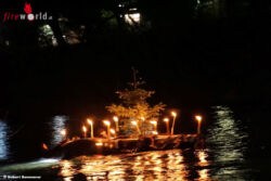 Mit ihrem Christbaumfloß und der Zillenbegleitung schwammen die Einsatztaucher von der Pegelmessstelle am Mareckkai in Waasen zur Waasenbrücke. Der Kommandant der FF Leoben-Stadt, HBI DI Gerhard Wurzer konnte dort eine große Besucherschar willkommen heißen, die die Taucher und das Christkind mit viel Applaus bedachte.
