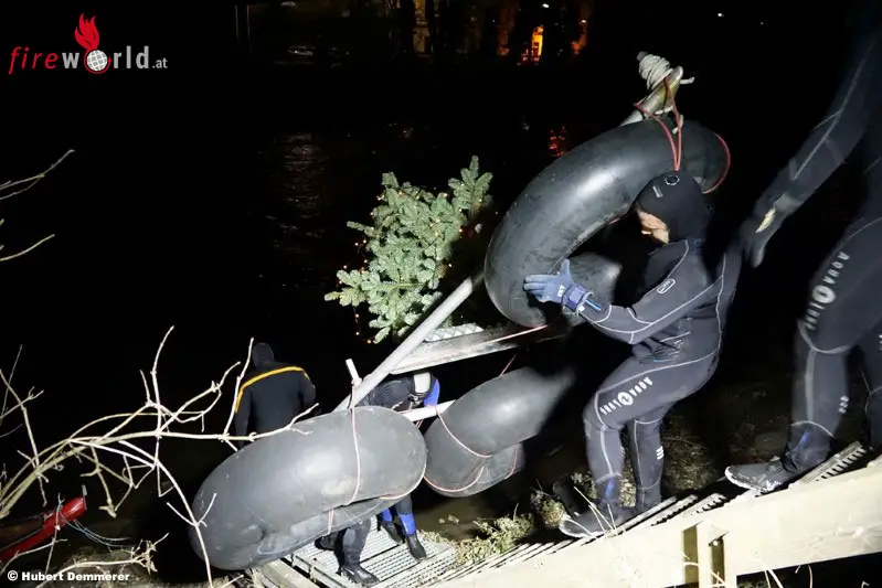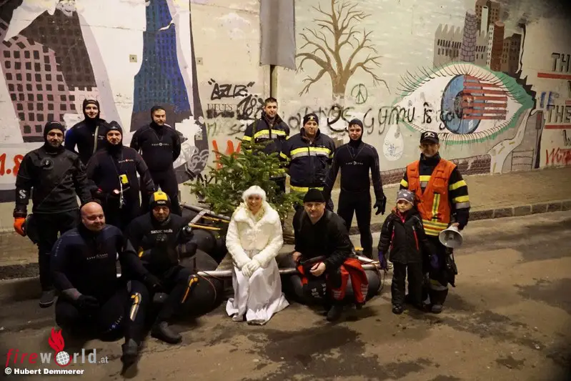 LEOBEN (STMK): Am 18.12.2017 veranstaltete die Abteilung Wasserdienst der Freiwilligen Feuerwehr Leoben-Stadt mit ihren Einsatztauchern und -schwimmern auf der Mur das traditionelle Weihnachtsschwimmen. Das Leobener Christkind begleitete die Feuerwehrtaucher und -schwimmer wieder in einer Feuerwehrzille.