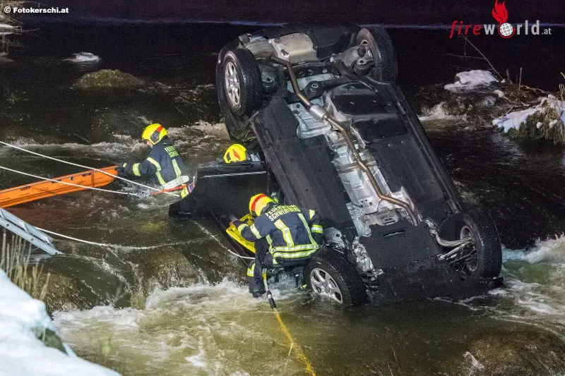 Kurz vor Mitternacht ging bei der Landeswarnzentrale Oberösterreich der Notruf ein, dass ein Fahrzeug im Josefstal in die Aist gestürzt ist und vermutlich noch eine Person im Fahrzeug eingeklemmt ist.