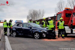 Wenige Augenblicke nach dem Sirenenalarm um 08:24 Uhr konnte das vollbesetzte Vorausfahrzeug und das schwere Rüstfahrzeug zum Einsatzort auf die A2 in Fahrtrichtung Graz ausrücken. Während der Anfahrt erhielt Einsatzleiter und Feuerwehrkommandant Walter Wistermayer bereits die positive Meldung, dass die im Fahrzeug eingeschlossene Lenkerin soeben durch den anwesenden Rettungsdienst befreit werden konnte.