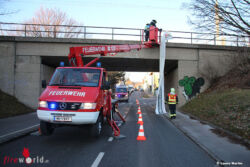 Nö: Feuerwehr entfernt absturzgefährdetes Transparent