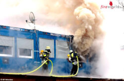 Bayern: Baustellen-Wohncontainer in München in Flammen
