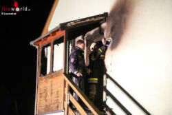 "Die Feuerwehren Gallsbach-Dachsberg und Prambachkirchen sind zum Brand Wohnhaus alarmiert worden. Aufgrund der Pagermeldung hab ich gleich gesehen, dass das bei meiner Nachbarin ist. Mein Sohn und ich sind gleich so herüber gelaufen. Wir haben dann gesehen, dass der Bewohner beim Fenster steht. Wir haben dann mit einer Leiter aus dem Schuppen die Personenrettung gleich durchgeführt, bis die Kollegen der Feuerwehr Gallsbach-Dachsberg eingetroffen sind und unter schwerem Atemschutz den Brand im Vorbau abgelöscht haben. In weiterer Folge haben dann die beiden Atemschutztzupps von Gallsbach-Dachsberg und Prambachkirchen zwei Katzen gerettet. Vom Brand selbst war ein außenliegender Stiegenaufgang mit einem Holzanbau," berichtet Hubert Straßer, Einsatzleiter der Feuerwehr Gallsbach-Dachsberg.