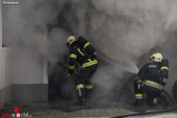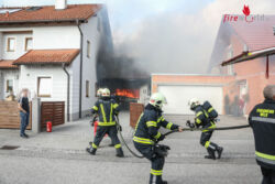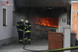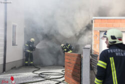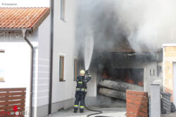WELS (OÖ): Die Feuerwehr wurde Sonntagnachmittag, 24. Dezember 2017, zu einem Garagenbrand nach Wels-Puchberg alarmiert. Eine Garage stand beim Eintreffen der Feuerwehr in Vollbrand.