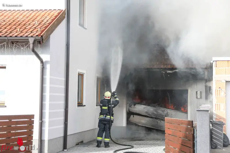 Die Feuerwehr startete sofort einen umfangreichen Löschangriff. Ein Übergreifen der Flammen auf das Wohnhaus konnte erfolgreich verhindert werden. Die Garage brannte jedoch vollständig aus. Die angrenzende Fassade und ein Fenster wurden ebenfalls schwer beschädigt, gerieten aber nicht in Brand.