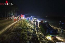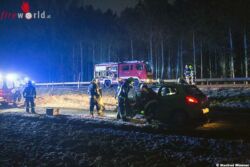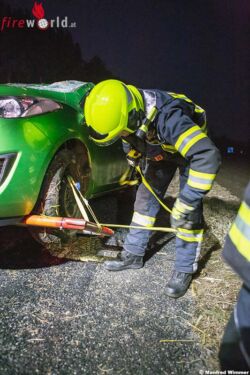 PALT (NÖ): Zur Menschenrettung nach einem Verkehrsunfall wurden in den Morgenstunden des 26. Dezember 2017 die Freiwilligen Feuerwehren Palt, Oberfucha und Furth-Göttweig alarmiert. Eine junge Frau kam mit ihrem Kleinwagen, von der B33 kommend auf der Auffahrt zur B37a, rechts von der Fahrbahn ab, überschlug sich und blieb Kopfüber am Wildzaun liegen.