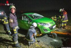 Die Fahrzeugbergung wurde von der Feuerwehr Palt übernommen. Händisch wurde der Pkw wieder auf die Räder gestellt und auf die Abschleppachse verladen. Nach etwas über einer Stunde konnte auch die FF Palt den Einsatz beenden und die Einsatzbereitschaft an Florian Krems melden.