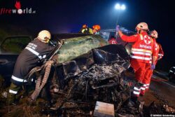 Nach intensivster Arbeit mit beiden hydraulischen Rettungsgeräten konnte die im Brust- und Beckenbereich eingeklemmte Person dem Roten Kreuz übergeben werden. Im Anschluss wurde die Fahrbahn gereinigt und die Fahrzeuge dem Abschleppdienst übergeben.