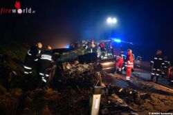 Aus noch ungeklärter Ursache prallten zwei Fahrzeuge frontal gegeneinander. Bei der Lageerkundung durch den Einsatzleiter Johannes Freund wurde festgestellt, dass eine Person in einem Wrack eingeklemmt war, die Person des zweiten Pkws wurde bereits durch das Rote Kreuz versorgt, war jedoch nicht eingeklemmt.