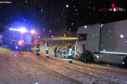 Ein Weiterkommen war somit nicht mehr möglich und die gesamte Bundesstraße wurde blockiert. Die Feuerwehr Ollern wurde daraufhin von Florian NÖ um 21:21 Uhr zur Lkw-Bergung alarmiert.