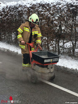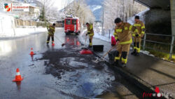 EBENSEE (OÖ): Am Freitag, dem 29.12.2017, wurde Freiw. Feuerwehr Ebensee telefonisch zu einem Öleinsatz gerufen. Nach der ersten Erkundung stellte sich heraus, dass die Straße vom Altstoffsammelzentrum bis zur Abfahrt Ebensee Mitte und der Parkplatz des ehemaligen Zielpunktmarktes verschmutzt war.