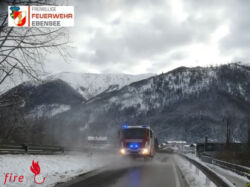 Deshalb wurden um 11:27 Uhr die Feuerwehren Ebensee und Rindbach alarmiert und wenige Minuten später die Feuerwehren Langwies und Roith. Die Kameraden der Feuerwehren brachten Ölbindemittel auf und reinigten die Fahrbahn mit Hilfe einer Kehrmaschine.