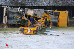 Oö: Schwerlast-Autokran am Fußballplatz in Heiligenberg umgestürzt