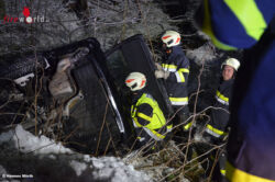 TRAHÜTTEN (STMK): „Verkehrsunfall, Auto in Bach, sieben Personen eingeklemmt“ → so lautetet der Einsatzbefehl für die Feuerwehren Trahütten und Deutschlandsberg in den Abendstunden des 28. Dezember 2017.