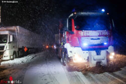 Da mehrere Feuerwehrkameraden in Kenntnis der Wetterlage bereits im Feuerwehrhaus anwesend waren, konnten sofort nach der Alarmierung drei Einsatzfahrzeuge vollbesetzt zu den Bergungsarbeiten auf der Autobahn ausrücken.