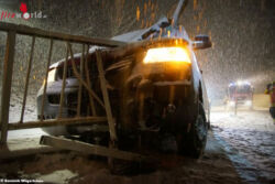 PASCHING (OÖ): In den frühen Morgenstunden des 30. Dezember 2017 wurde die Freiwillige Feuerwehr Pasching zu einem Verkehrsunfall Nahe dem Feuerwehrhaus alarmiert. Im unerwarteten Wintereinbruchs kam ein Pkw-Lenker mit seinem Fahrzeug von der schneeglatten Fahrbahn ab und prallte so gegen das Geländer einer Unterführung.
