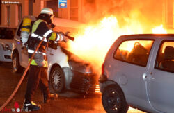 Mehrere Passanten bemerkten die Flammen und informierten die Integrierte Leitstelle. Bereits auf der Anfahrt, konnten die Einsatzkräfte der Hauptfeuerwache eine starke Rauchentwicklung sehen. Ein Trupp mit Atemschutz und einem C-Rohr löschte den brennenden VW-Caddy schnell ab. Ebenso konnten sie den Flammenübergriff auf einen Renault vermeiden. Dieser wurde jedoch durch die