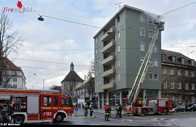 MÜNCHEN (BAYERN): Am Nachmittag des 2. Jänner 2018 ist im Münchner Stadtteil Altstadt-Lehel ein Brand ausgebrochen. Mehrere Passanten bemerkten, dass Rauch aus einem Fenster im fünften Obergeschoss quillt und informierten daraufhin die Feuerwehr.