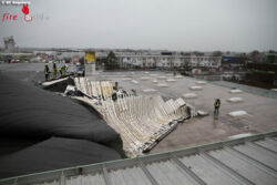 Gegen 10:30 Uhr wurde die Berufsfeuerwehr Augsburg zu Aindlinger Straße gerufen. Dort deckte der Sturm ein großes Flachdach ab. Das Dach klappte auf ein anderes Dach. Das Dach wurde mit Sandsäcken beschwert. Die Einsätze hielten am Nachmittag noch an.