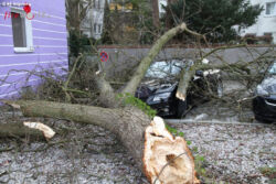 Gegen 9:00 Uhr wurde das Kleinalarmfahrzeug der Berufsfeuerwehr Augsburg zur Oblatterwallstraße gerufen. Ein großer Ast brach durch den Sturm von einem Baum, schrammte an der Hausfassade, zerbrach mehrere Fensterscheiben und landete auf zwei parkende Autos. Der große Ast wurde durch die Berufsfeuerwehr Augsburg entfernt. Verletzt wurde niemand.