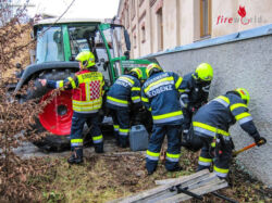 Stmk: Verunfallter Traktorlenker zwischen Hausmauer und Fahrerkabine eingeklemmt