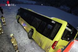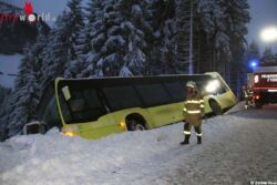 Nach Eintreffen der ersten Einsatzkräfte konnte zum Glück Entwarnung gegeben werden. Der Bus rutschte zwar über den Fahrbahnrand hinaus und geriet in Schieflage, jedoch verhinderten die Schneewände ein weiteres Abrutschen bzw. Umkippen des Fahrzeuges. Lediglich eine Person wurde leicht verletzt der Rettung übergeben. Die restlichen Fahrgäste konnten den Bus selbstständig und unverletzt verlassen.
