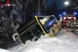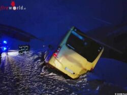 T: Autobus mit 50 Fahrgästen in gefährlicher Schieflage