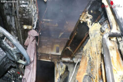 Die Hitze in der Fahrerkabine war bereits so groß, dass die komplette Innenausstattung geschmolzen, und die Gasflasche eines mobilen Kochers bereits geborsten war. Der LKW-Fahrer wurde mit Verletzungen unbestimmten Grades vom Rettungsdienst in das Krankenhaus verbracht.