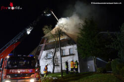 Das Feuer breitete ich im 1. Obergeschoß aus und fraß sich durch das Dach hindurch. Die Feuerwehr hatte am Anfang Schwierigkeiten von außen an das Feuer zu kommen da das Dach mit Bitumenschindeln gedeckt war, somit konnte das Dach nicht abgedeckt werden. Die Feuerwehr bekämpfte das Feuer mit mehreren Trupps im Innenangriff und Strahlrohren von aussen. Unterstützt wurde die Neuweiler Feuerwehr von der Überlandbrandhilfe aus Calw die mit der Drehleiter und dem Gerätewagen – Atemschutz vor Ort waren. Aus dem Gebäude wurden drei Personen gerettet und notärztlich versorgt. Eine 75-jährige Person erlag noch an der Einsatzstelle ihren Verletzungen. Die zwei verletzten Anwohner wurden in eine Klinik gebracht.
