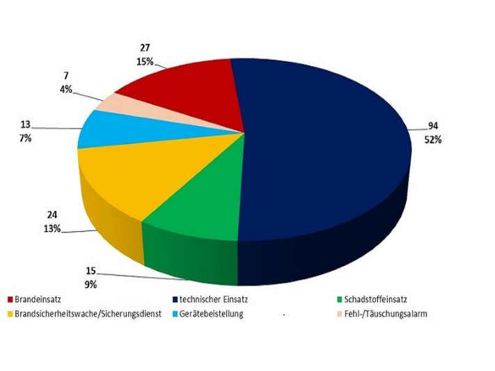 Es handelte sich dabei um 94 technische Einsätze, 34 Brandeinsätze (davon 7 Fehlalarme), 15 Schadstoffeinsätze, 13 Gerätebeistellungen sowie 24 Brandsicherheitswachen und Sicherungsdienste. Aber auch andere Aktivitäten wie Schulungen, Übungen, Instandhaltungsarbeiten, Reparaturen usw. wurden durchgeführt, insgesamt wurden im Jahr 2017 von den Mitgliedern der FF Gainfarn 9795 Arbeitsstunden erbracht.