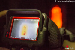 Die um 06.45 Uhr alarmierten Kräfte der Alkovener Feuerwehr, die mit dem Tanklöschfahrzeug, der Teleskopmastbühne sowie dem Rüstlöschfahrzeug am Einsatzort eingetroffen sind, führten unverzüglich eine erste Erkundung im Dachbodenbereich durch. In dem im Inneren brennenden Kamin wurden in der Erstphase per Wärmebildkamera Temperaturen von bis zu 750°C gemessen. Sowohl im Innenbereich des Dachbodens als über die Teleskopmastbühne im Außenbereich wurden umfassende Kontrollen in Hinblick auf eine mögliche Brandbildung durch den Funkenflug durchgeführt.