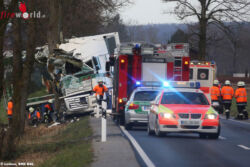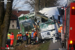 PIDING (BAYERN): Am Dienstagmittag, 9. Jänner 2018, hat sich gegen 12.20 Uhr auf der Staatsstraße 2103 (Teisendorfer Straße) zwischen dem Ortsteil Urwies und der Einmündung in die B20 ein spektakulärer Verkehrsunfall mit einem Sattelschlepper ereignet.