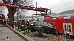 Der Pkw setzte mit der Bodenplatte auf der Böschung auf. Die alarmierte Feuerwehr Gloggnitz hob das Fahrzeug mit einem Kran zurück auf die Fahrbahn. Nach 30 Minuten konnten die zwei Fahrzeuge und acht Einsatzkräften den Einsatz beenden.
