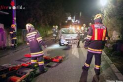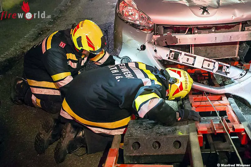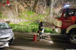 AIGEN (NÖ): Zur Menschenrettung nach einem Verkehrsunfall auf der L7105 in Aigen wurden in den Abendstunden des 9. Jänner 2018 die Feuerwehren Furth-Göttweig, Paudorf und Steinaweg alarmiert. In einer scharfen Rechtskurve verlor ein Pkw-Lenker die Kontrolle über sein Fahrzeug, prallte gegen die Böschung und überschlug sich.