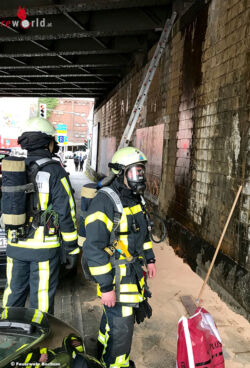 Beim Eintreffen der ersten Einsatzkräfte der Innenstadtwache bestätigte sich diese Meldung. Aus dem Gleisbereich der Deutschen Bahn sickerte vermutlich Diesel durch die Brückenkonstruktion und lief an der Wand der Unterführung entlang auf den Gehweg. Der Bereich wurde durch die Einsatzkräfte umgehend abgesperrt, die Flüssigkeit abgestraft und vorsichtshalber ein Löschangriff vorbereitet.