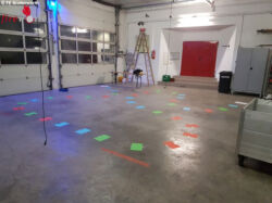Der Boden der Fahrzeughalle wurde am 12.01.2018 zum Spielbrett mit 36 Feldern. Die Teilnehmer konnten sich zunächst eine Spielfigur aussuchen, vom Stiefel bis zum blinkenden Verkehrsleitkegel war alles dabei. Danach wurde der Reihe nach gewürfelt und gezogen.