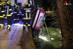 Oö: Auto bei Verkehrsunfall in Schlatt seitlich in Bach gestürzt