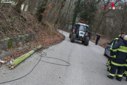 Gemeldet wurde eine abgerissene Stromleitung auf einer Straße. Beim Eintreffen der Feuerwehr stellte sich heraus, dass es sich um eine Telefonleitung und nicht um eine Stromleitung handelt. Ein Traktor samt Holzanhänger hat die Leitung zuvor bei der Durchfahrt abgerissen. Der Telefonanbieter wurde von den Einsatzkräften verständigt und die Straße wieder frei gemacht.