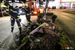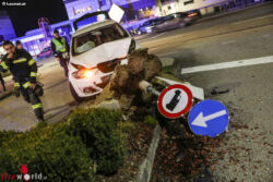 Ein Pkw-Lenker krachte mit einem Auto gegen einen Fahrbahnteiler bei der Einfahrt einer Geschäftszeile beziehungsweise eines Fast-Food-Restaurants im Welser Stadtteil Lichtenegg. Verletzt wurde niemand. Die Feuerwehr musste zu den Aufräumarbeiten anrücken, weil nicht nur das Auto sondern auch ein großer Betonring mit einem Verkehrszeichen beschädigt wurde und die Ein- beziehungsweise Ausfahrt blockierte.