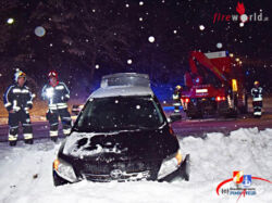 PINKAFELD (BGLD): Am Abend des 14.01.2018 wurde die Feuerwehr der Stadt Pinkafeld mittels Rufempfänger zu einer Fahrzeugbergung Richtung Oberschützen alarmiert. Auf der schneeglatten Fahrbahn war ein Pkw in den Graben gerutscht.