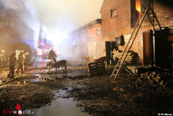 WERNE (DEUTSCHLAND): Um 19:29 Uhr des 14. Jänner 2018 wurde die Freiwillige Feuerwehr Werne zu einem vermuteten Gebäudebrand in den Ortsteil Werne-Horst alarmiert. Bereits auf der Anfahrt konnten die Einsatzkräfte den ausgedehnten Brand eines Stallgebäudes erkennen.