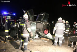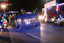 Nö: Person klemmt in auf der Seite liegendem Unfallfahrzeug auf der B1