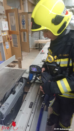 Vorbildlich funktionierte die Erste Löschhilfe, da die Mitarbeiter den betreffenden Absaugstrang sofort abbauten und mithilfe von Feuerlöschern den Glimmbrand erfolgreich bekämpfen konnten. Die Feuerwehren führten mit den Wärmebildkameras noch Kontrollarbeiten durch und halfen beim Abbau der Absaugung mit. Gottseidank war der Brand beschränkt auf eine Maschine und einen Absaugstrang. Einsatzende: 08:31 Uhr.