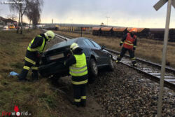 Nö: Pkw bei Auffahrunfall auf Gleisbett geschleudert